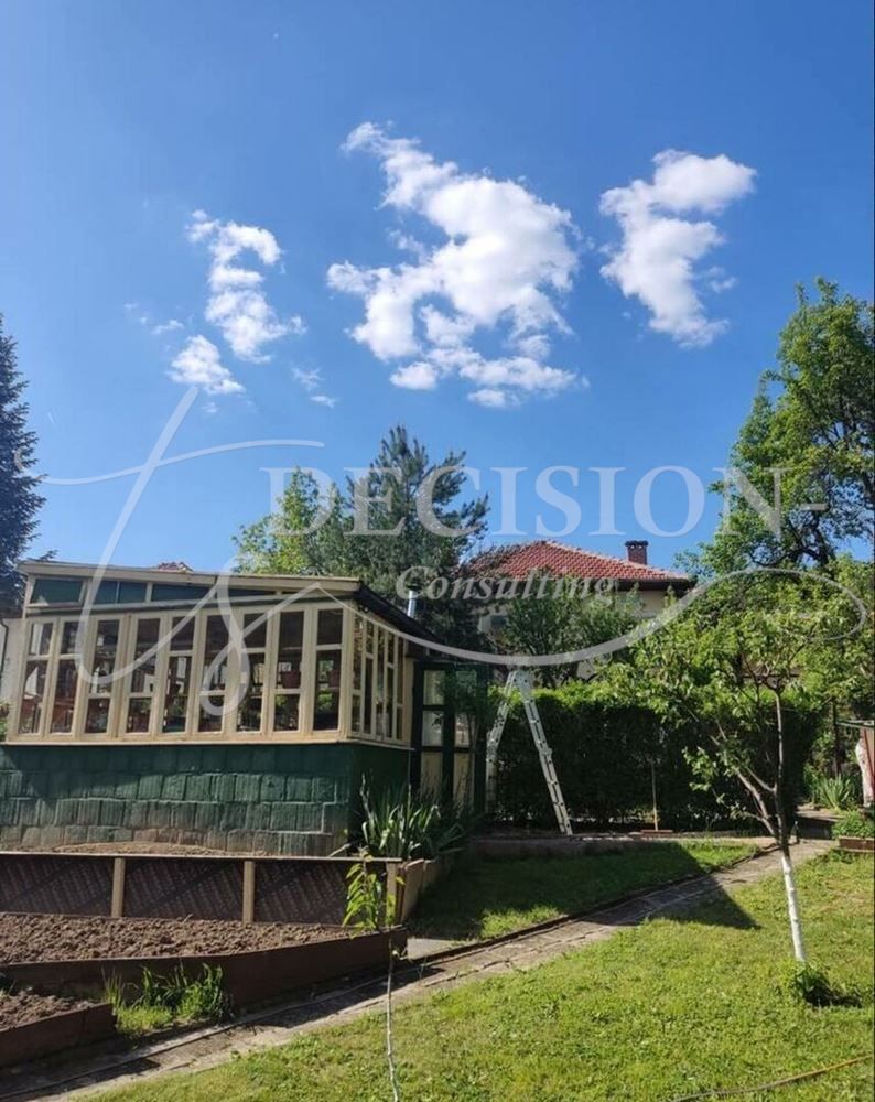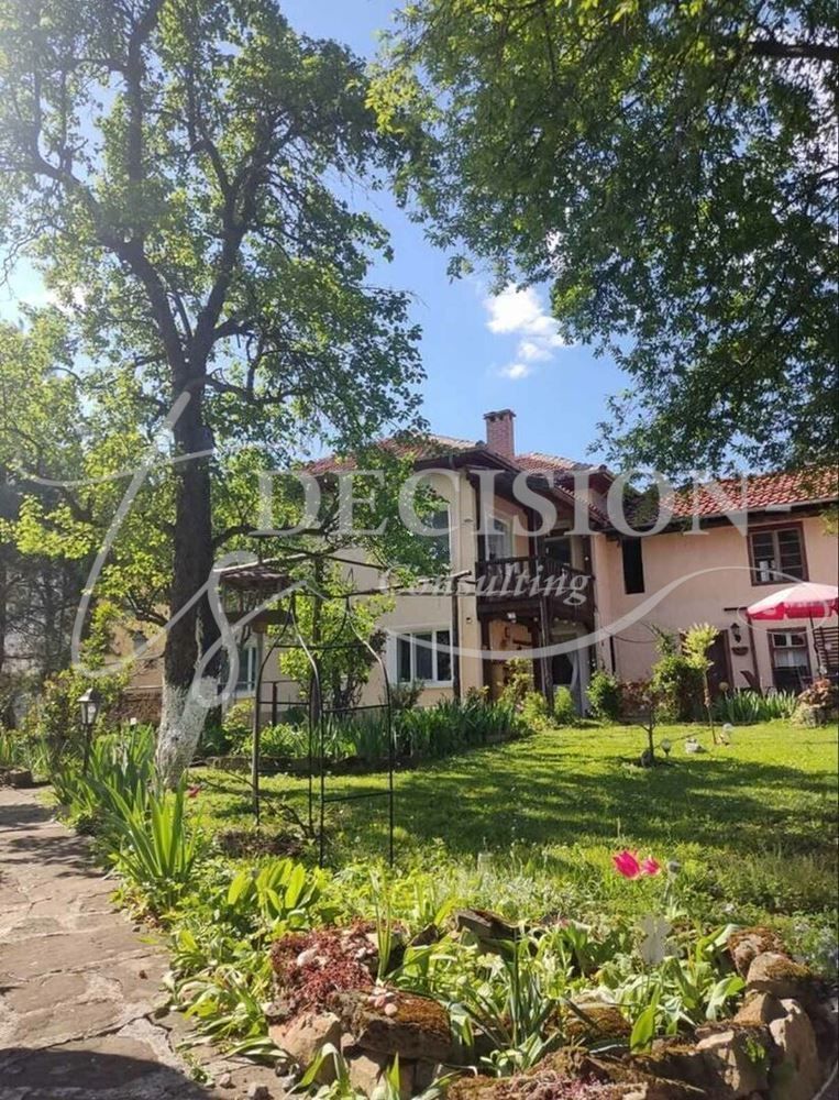 Дворът е 1550 кв.м – равен, слънчев и поддържан с впечатляваща зеленa и цветна градина, каменни алеи и оформени кътове за отдих. Имотът се продава с наличното обзавеждане.